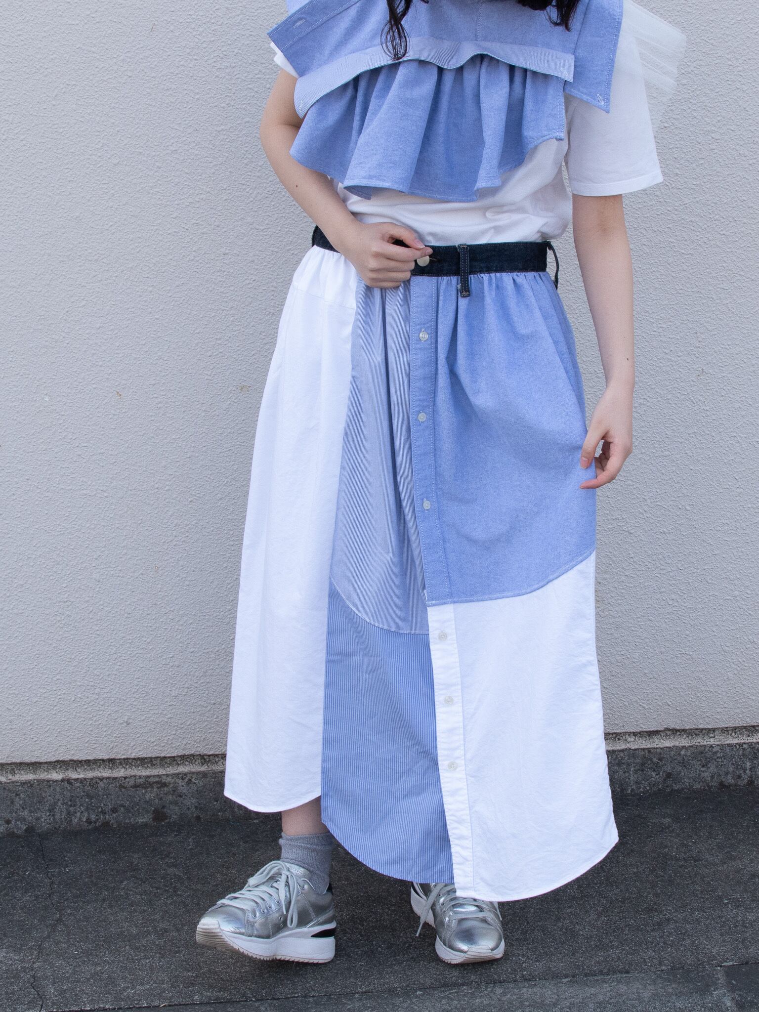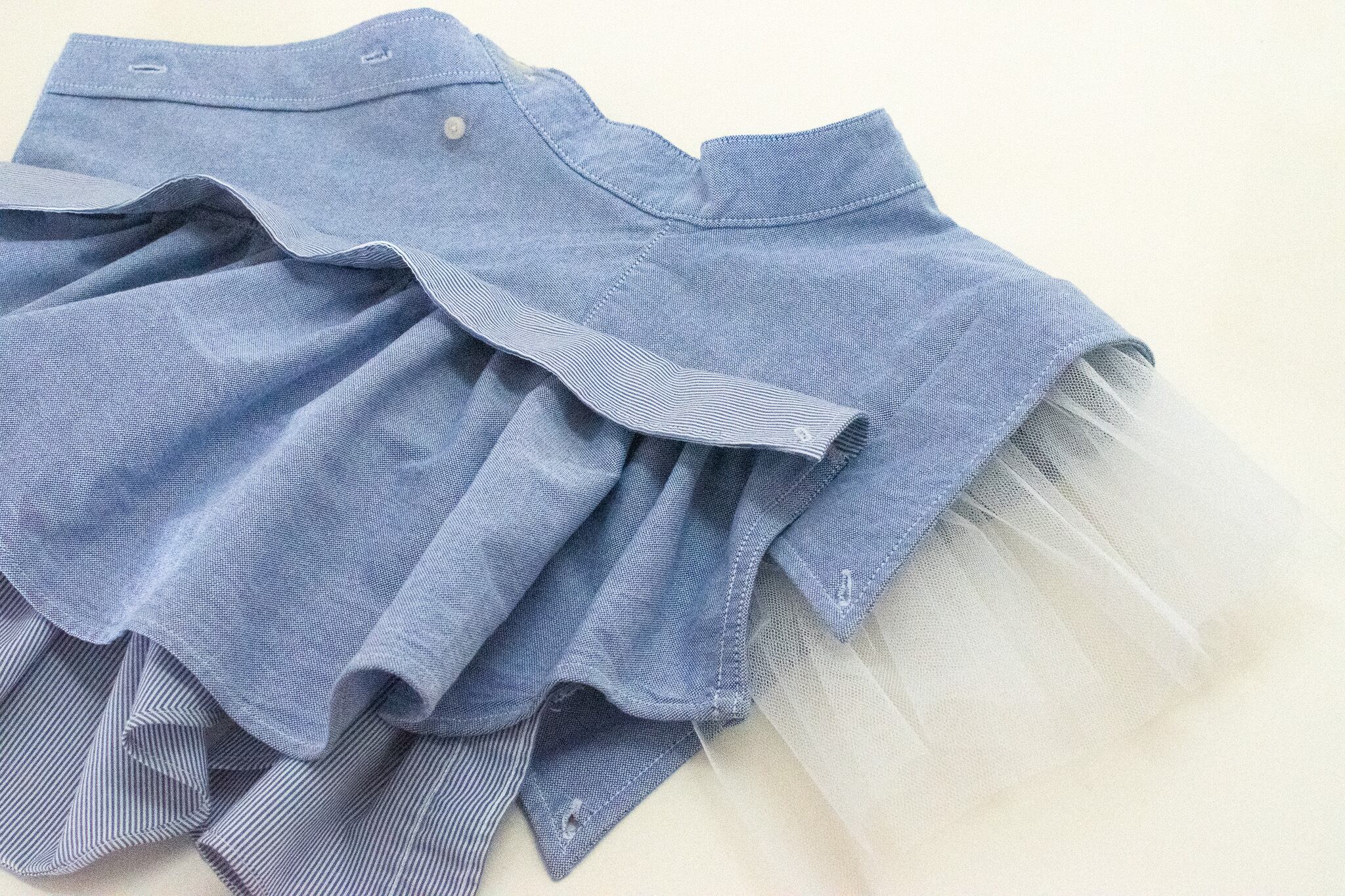 2枚のシャツをリメイクしたつけ襟です。