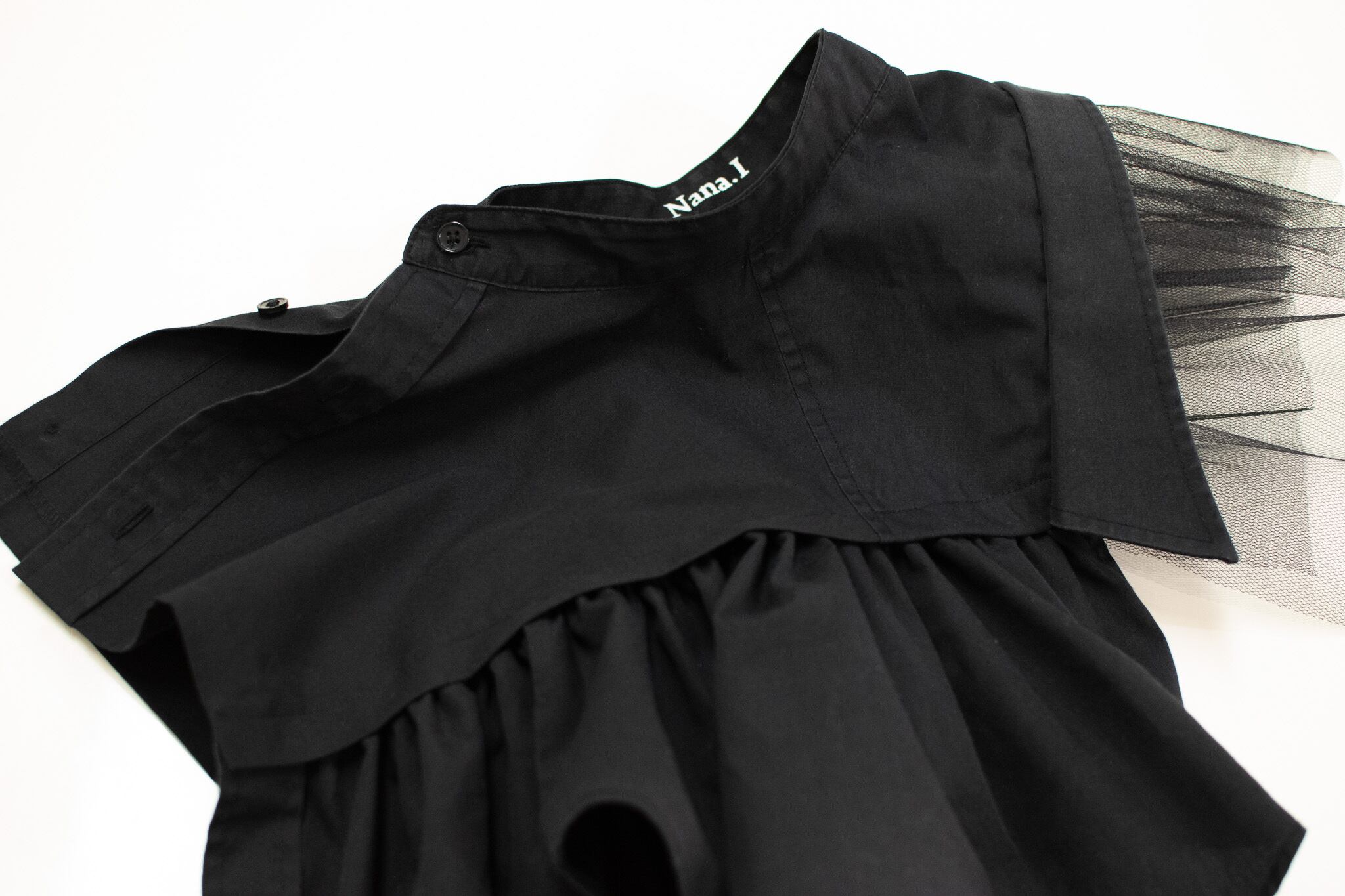 肩の部分にはギャザーを寄せたチュールを縫い付けました。