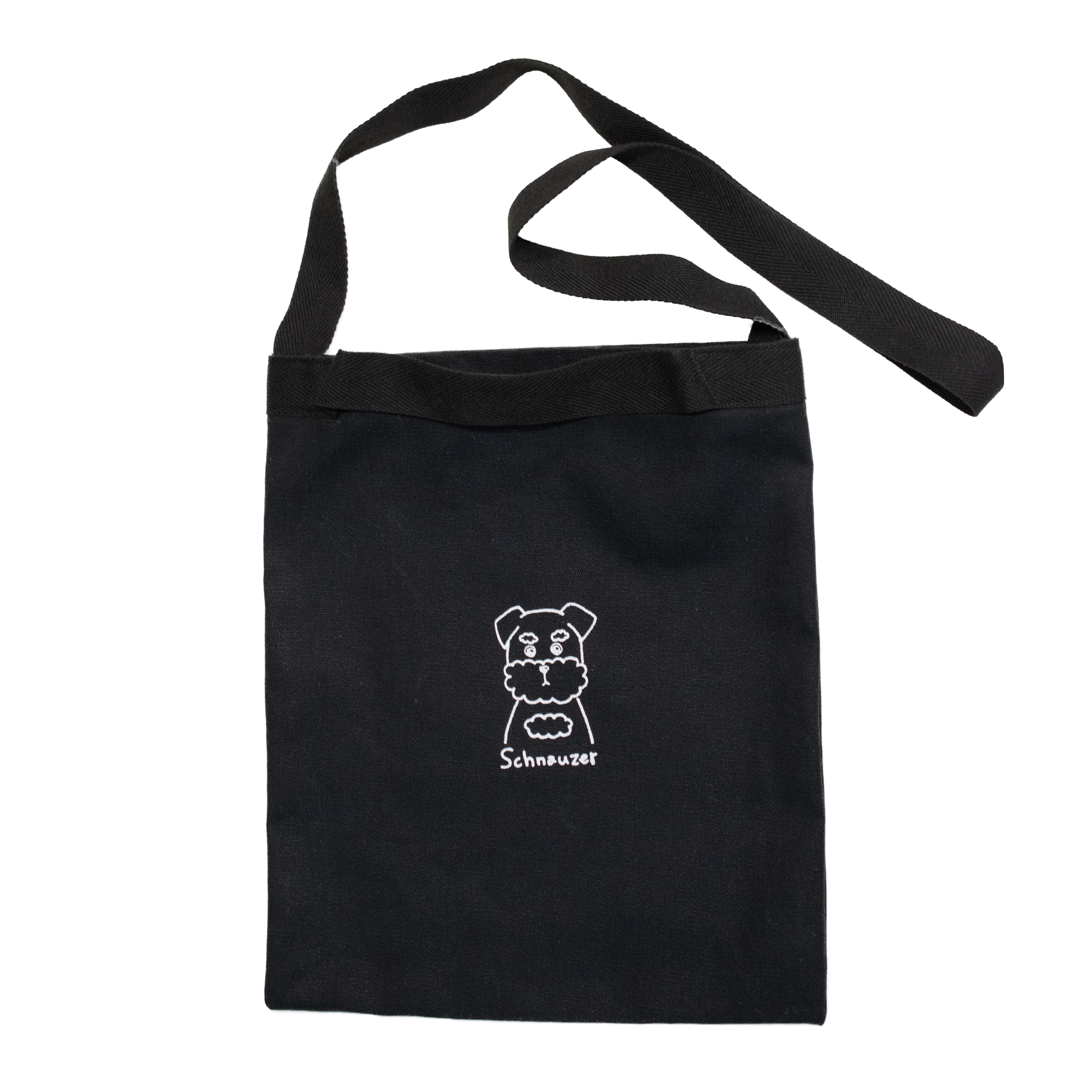 真顔でこちらを見てくるミニチュアシュナウザーのバッグです。