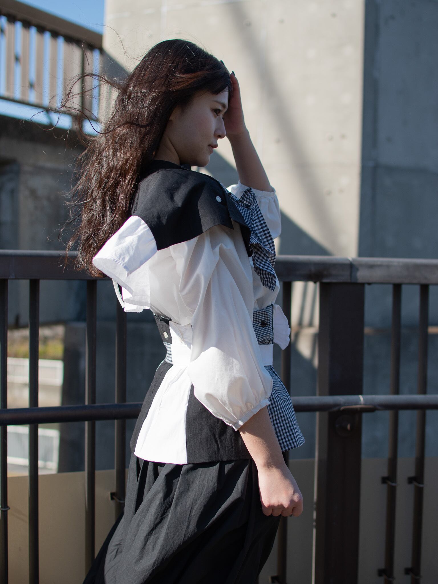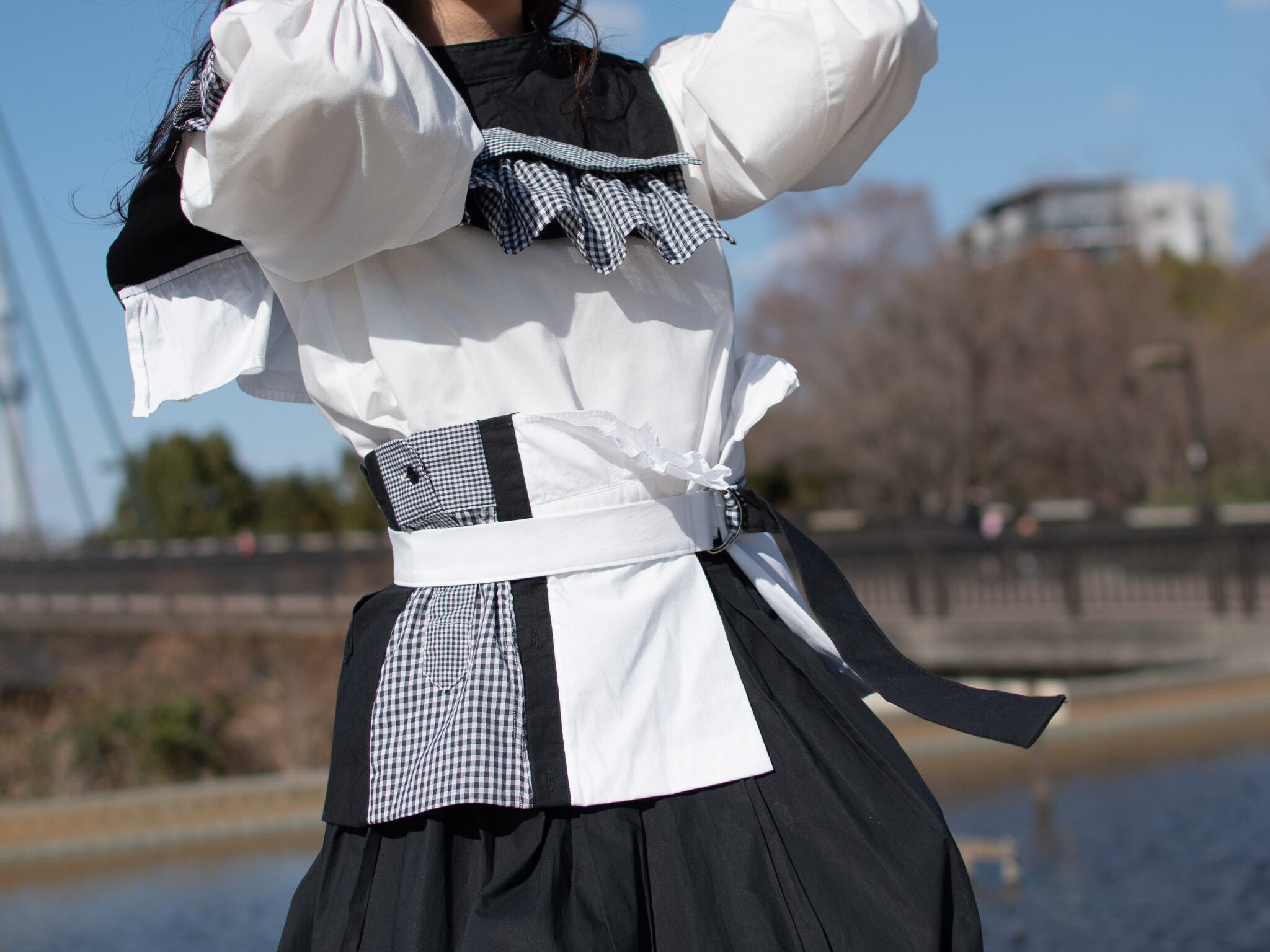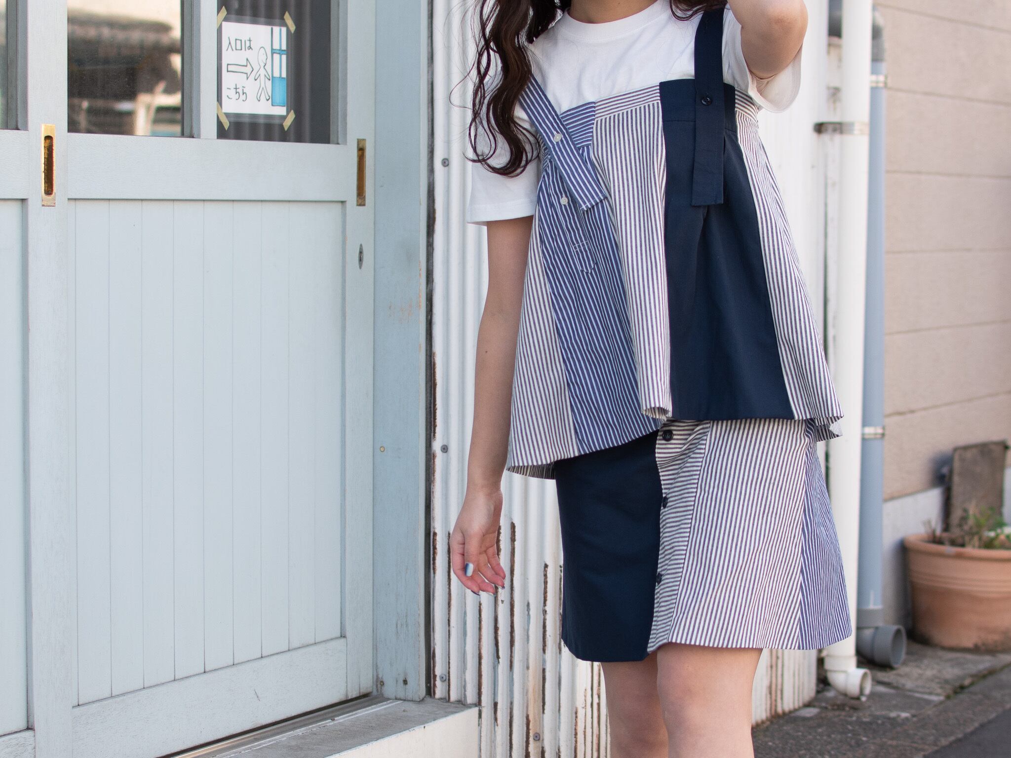 誰もが1着は持っているであろうシャツ。定番アイテムでありながら襟、カフス、ポケットなどパーツが多く、それらのデザインは様々だ。デザインに個性がみられるシャツはリメイクの可能性が無限大だと考えた。1st collectionでは、全てのアイテムにシャツを取り入れることをテーマとし、シャツの新たな可能性を探った。